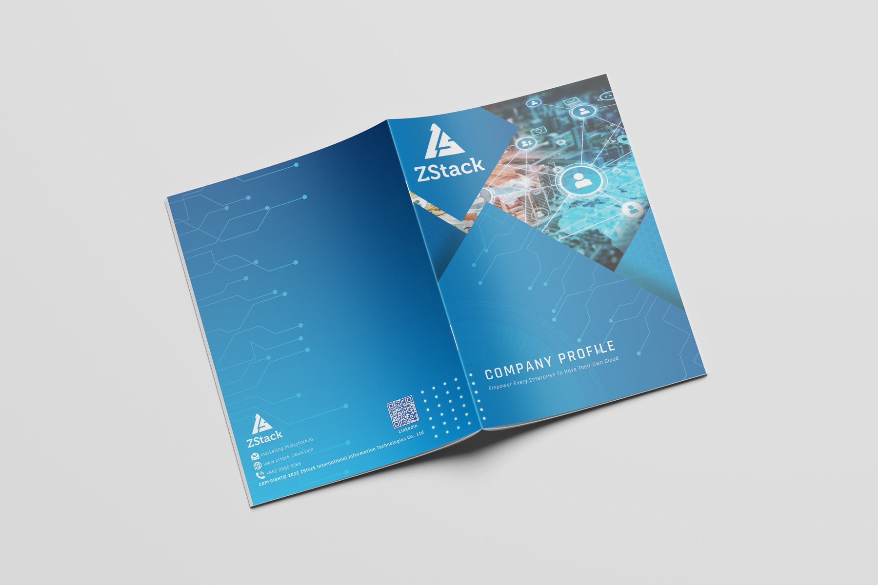 This project involved designing a company profile brochure for ZStack, a trusted cloud solutions provider.